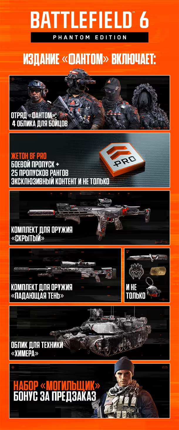 - В войне с танками, истребителями и огромным боевым арсеналом ваш отряд — самое смертоносное оружие. Всё это —Battlefield 6!
